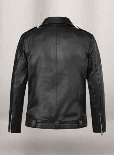 Stylish Celebrity Motorcycle Biker Men Handmade Lambskin Black Leather Jacket