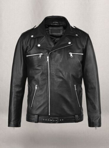 Stylish Celebrity Motorcycle Biker Men Handmade Lambskin Black Leather Jacket\AS