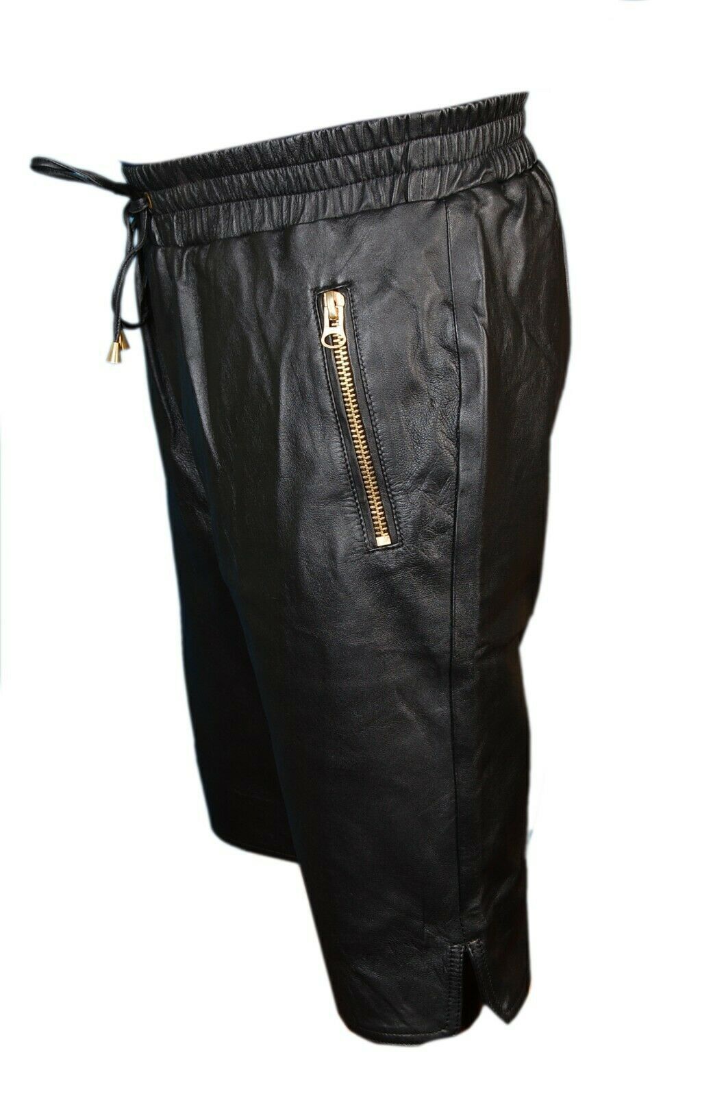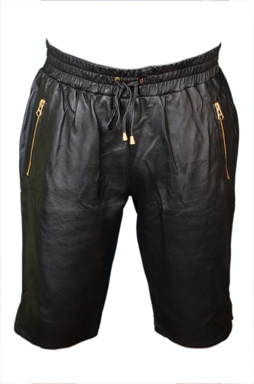 100% Leather Lambskin Unique Men Biker Genuine Stylish Boxer Gym Shorts Black\AS