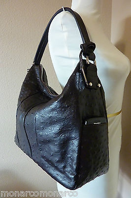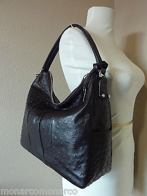 You are looking at an absolutely stunning Rich Espresso Ostrich Embossed Leather Soho Medium Hobo Bag