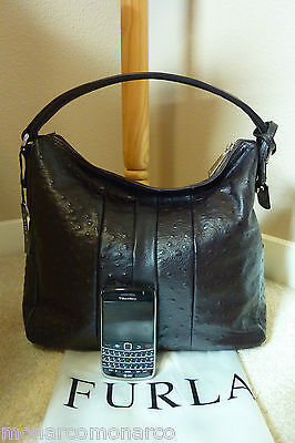 NWT Furla Espresso/Bold Coffee Ostrich Embossed Leather Soho Hobo Bag $398
