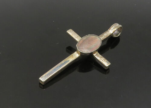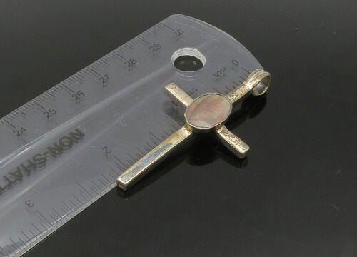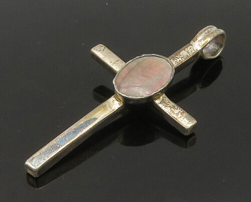 925 Sterling Silver - Vintage Abalone Shell Religious Cross Pendant - PT17635