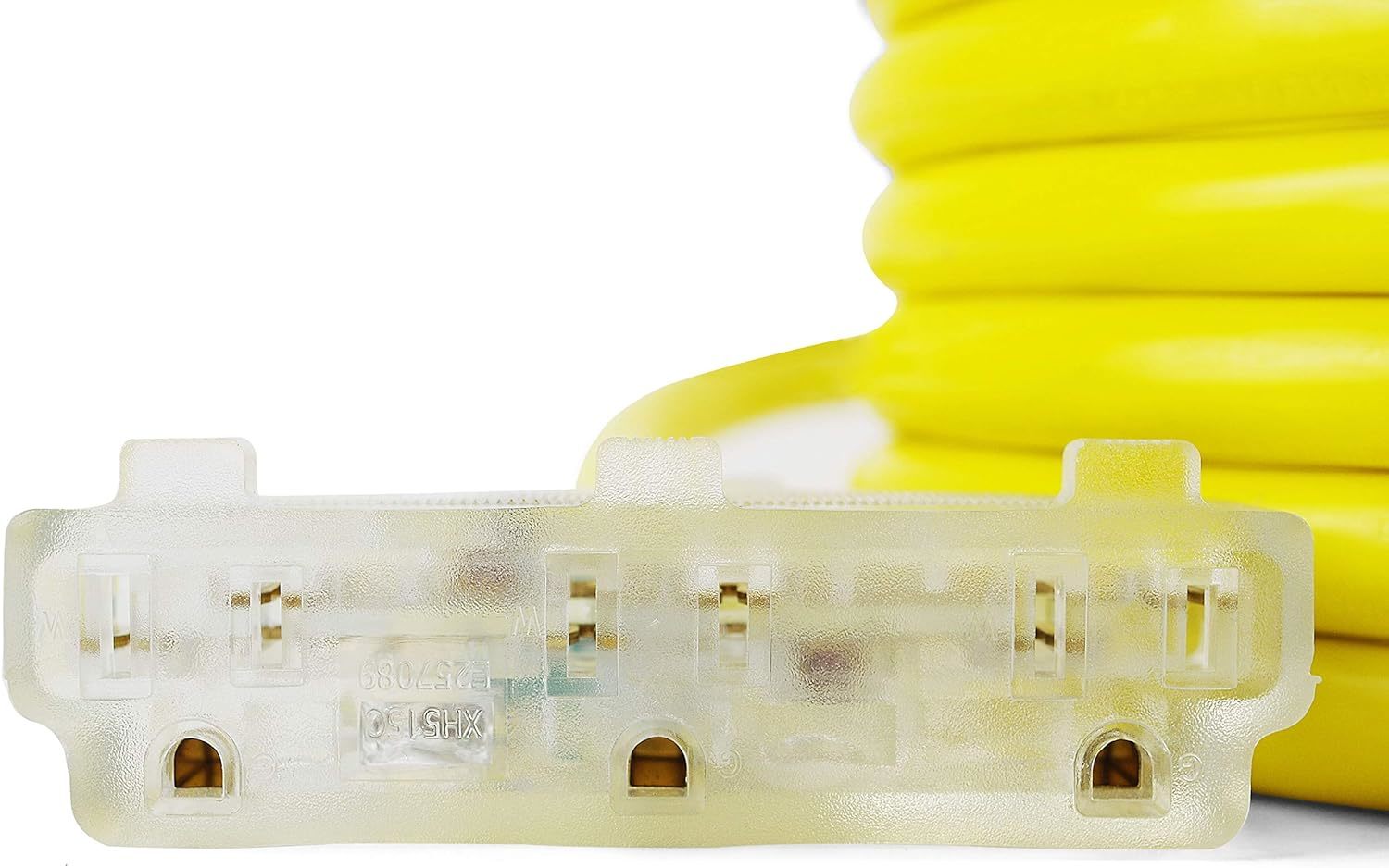 POWERFUL - Converts a 30-amp locking outlet to three 15-amp household outlets and extends your power up to 25 feet 3 OUTLET - Converting to more outlets offers more possibilities. Great for generator/welders powering up lots of tools, lights and lanterns. Larger grills and heaters for camping sites. UL LISTED - The cord has passed UL certification ensure that the product meets a nationally recognized safety standard. HEAVY DUTY - Pure copper prevents the cable from overheating due to prolonged use. Heavy-duty ropes are resistant to cold and heat, and remain flexible in extreme temperatures. AFTER-SALES SERVICE - HENGYI is an extension cord production factory, we have a standardized quality inspection department. Welcome to contact us and our customer service will reply within 12 hours.