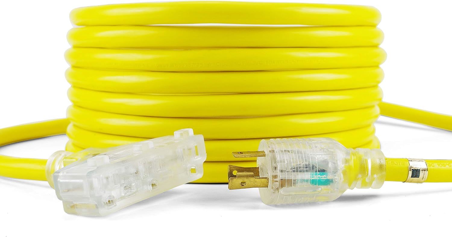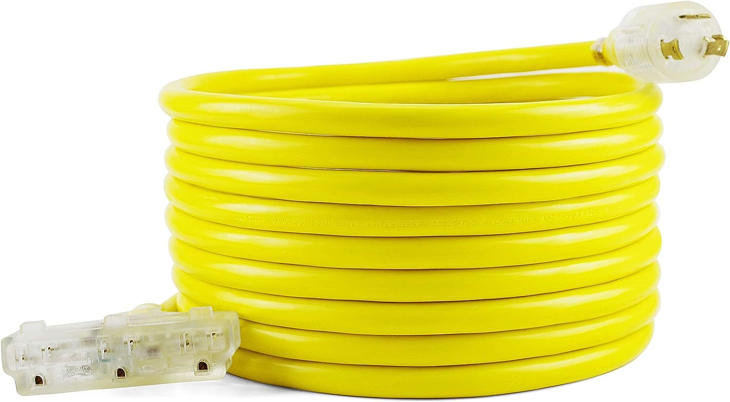 DURABLE - 25Ft 10 gauge wire, 3 prong household outlets and L5-30P twist locking plug