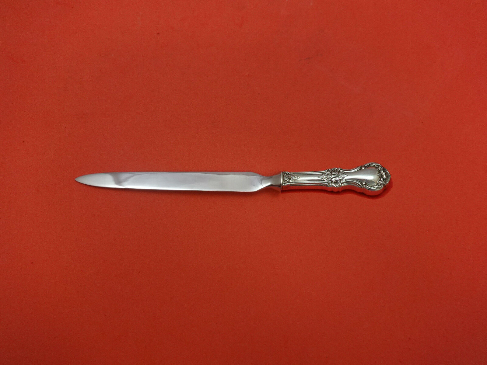 Sterling Silver hollow handle with stainless implement LETTER OPENER APPROX. 8" CUSTOM MADE in the pattern WILD ROSE BY INTERNATIONAL. It is NOT monogrammed and is in excellent condition.