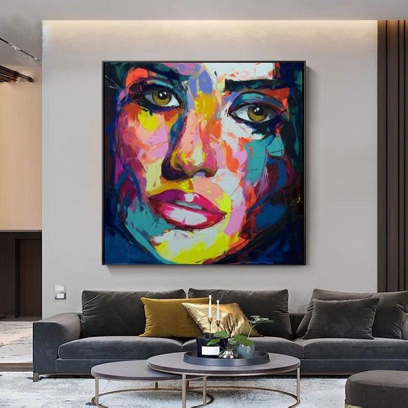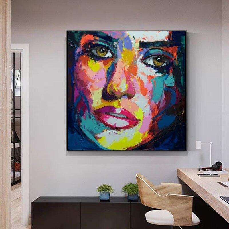 Francoise Nielly handmade Palette knife portrait Face Oil painting on canvas acr