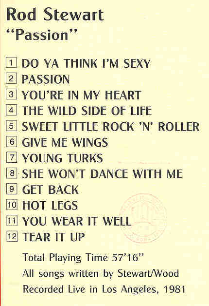 The Face / Rod Stewart - Passion ( On Stage Recs ) ( Rod Stewart Live At Los Ang