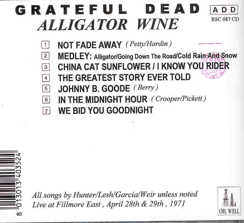 Grateful Dead - Alligator Wine ( Oil Well Recs. ) ( Live at Fillmore East . April 28th 29th . 1971 )