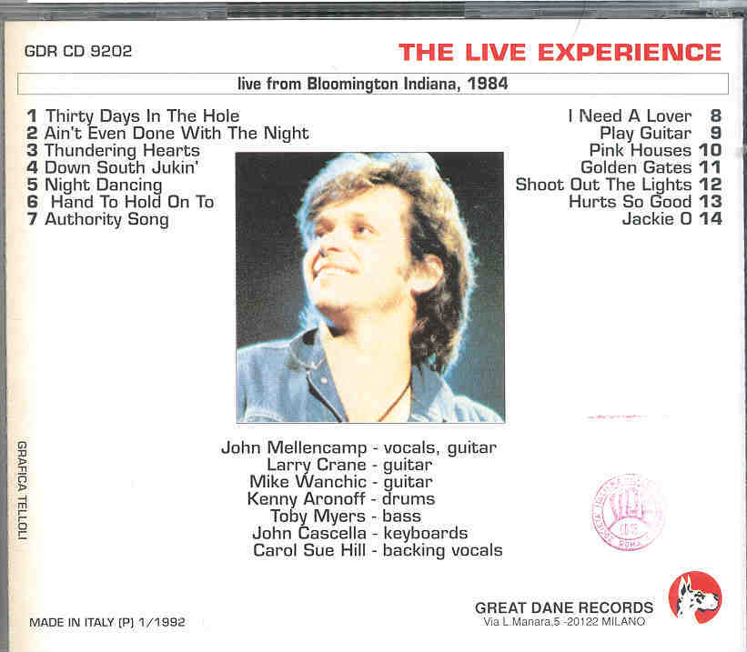 John Cougar Mellencamp - Night Dancing ( Bloomington . Indiana . 1984 ) ( Great Dane Recs )
