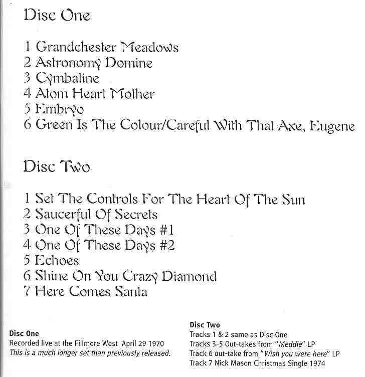 Pink Floyd - Black Glass ( 2 CD SET ) ( Fillmore 1970 + Outtakes From Meddle Wish You Were Here )