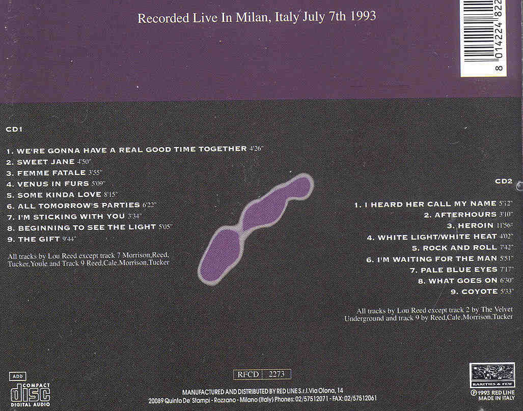 Lou Reed / Velvet Underground - Velvet 1993 ( 2 CD set ) ( Live In Milan . Italy . July 7th . 1993 )