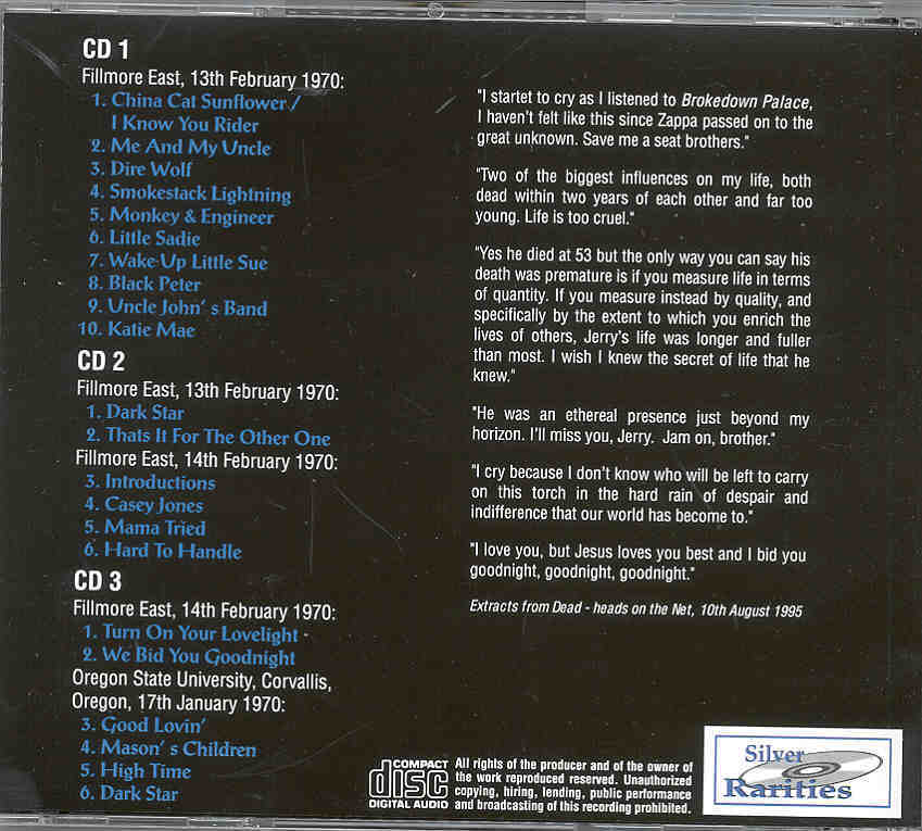 Grateful Dead - We Bid You Goodnight ( 3 CD set ) ( Silver Rarities ) ( Fillmore Feb 13th 14th 1970 + Oregon 1970 )