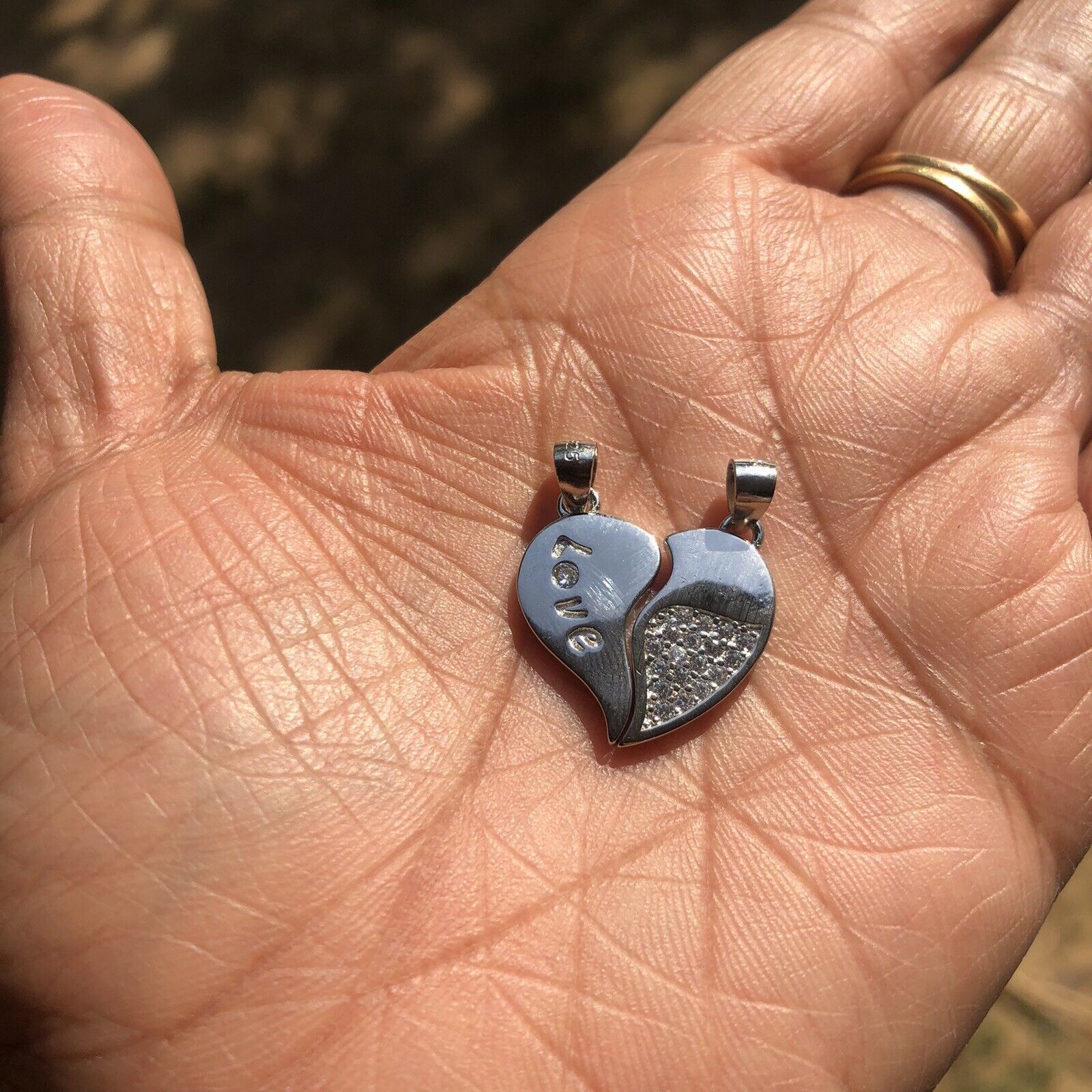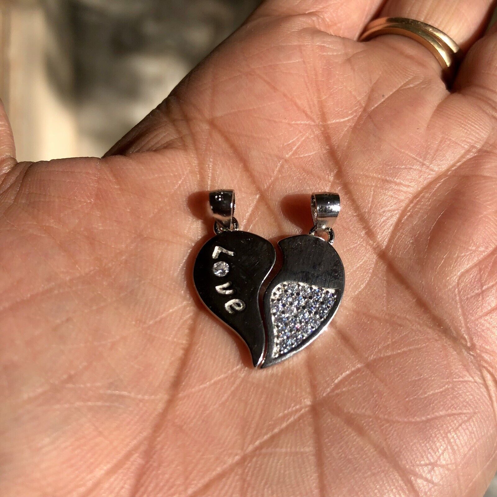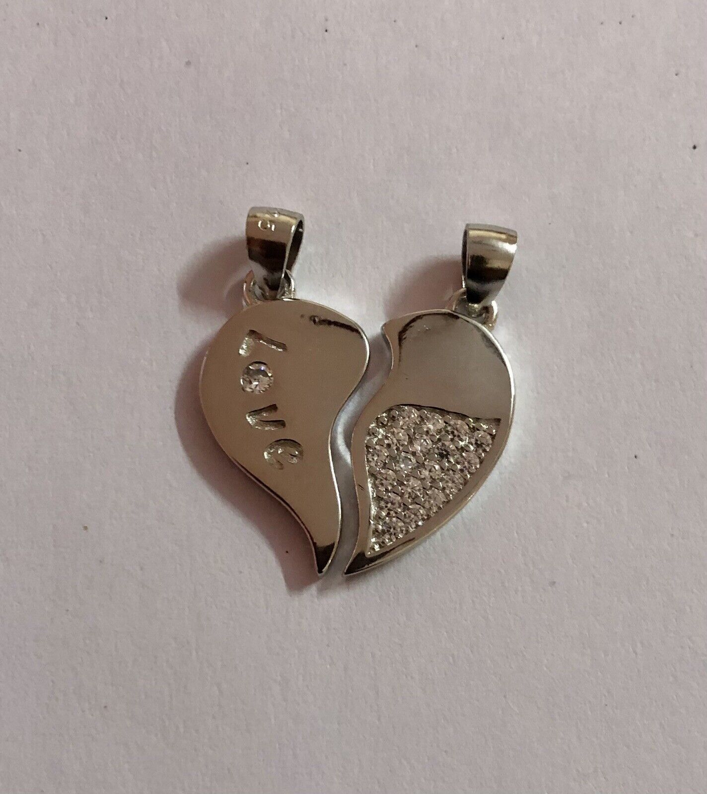 925 Sterling Silber Cz Split Heart, Broken Heart, Flicked Heart Couple Pendants