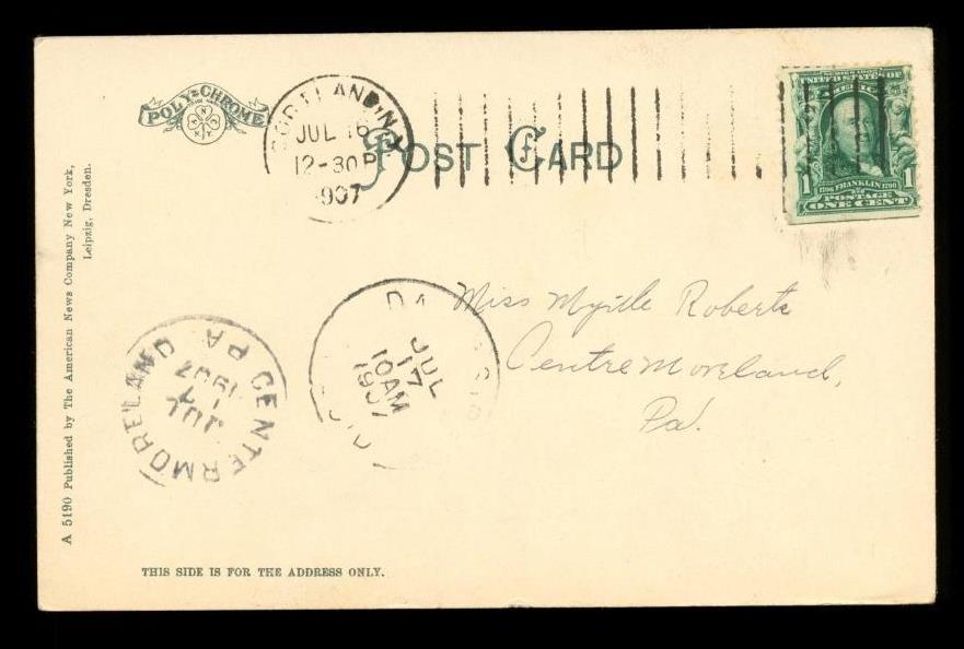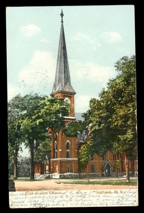 Vintage Postcard First Baptist Church Cortland NY Polychrome Multi 1907 Cancels