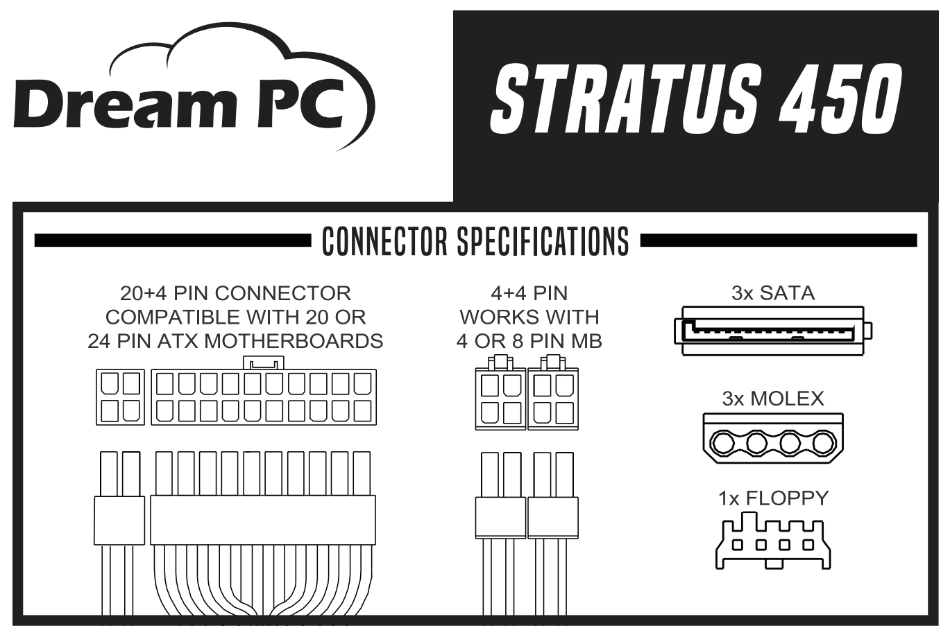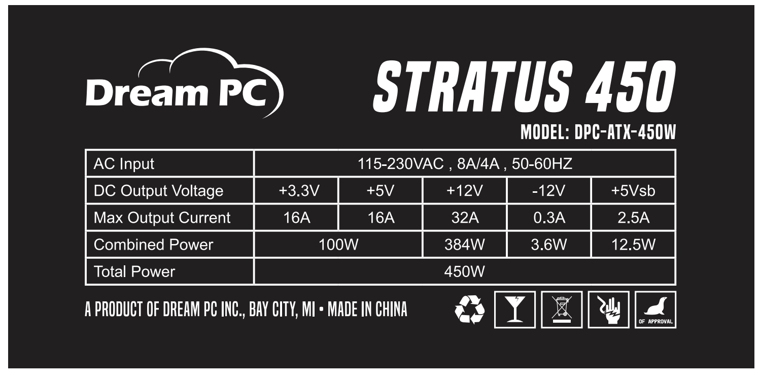 Dream PC is proud to announce our newest model, the DreamPC Stratus 450 Watt ATX Power Supply.