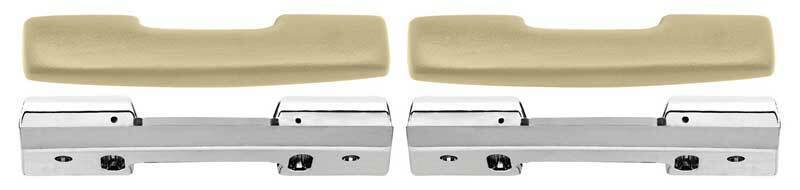 67 Chevy Camaro Front Chrome Arm Rest Bases And Gold Pads - Pair (New)