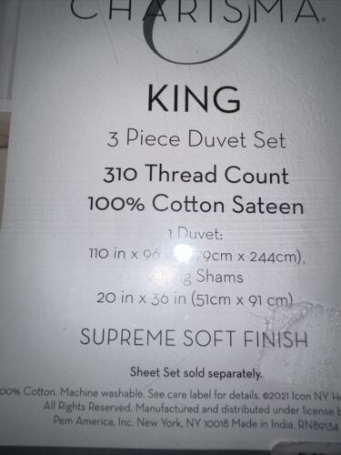CHARISMA 3pc KING DUVET SET 310tc IVORY NIP $395 VERY VERY SOFT BEAUTIFUL