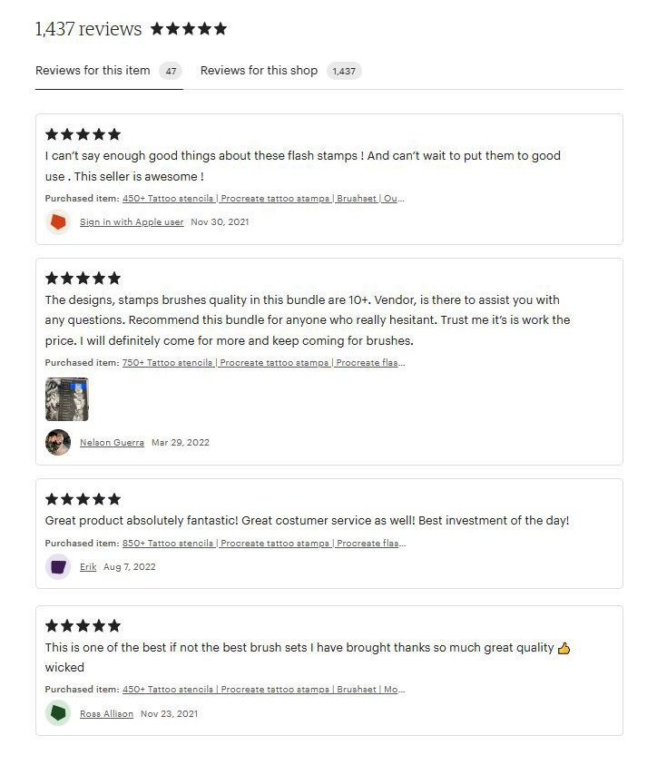 3000+ Tattoo stencils | Procreate tattoo stamps | Procreate flash