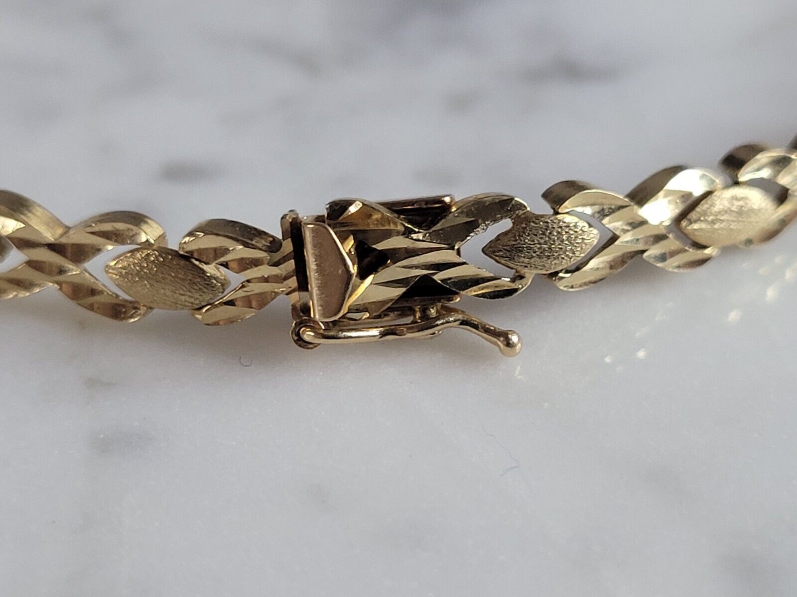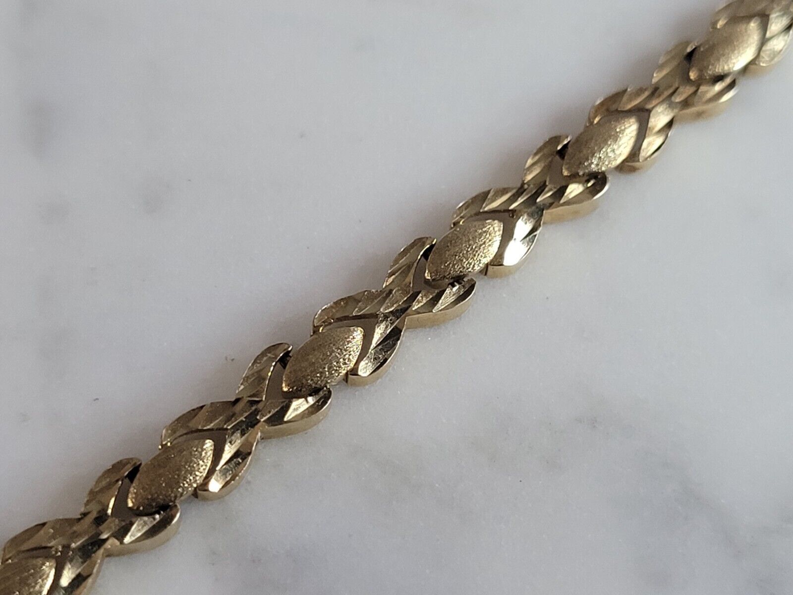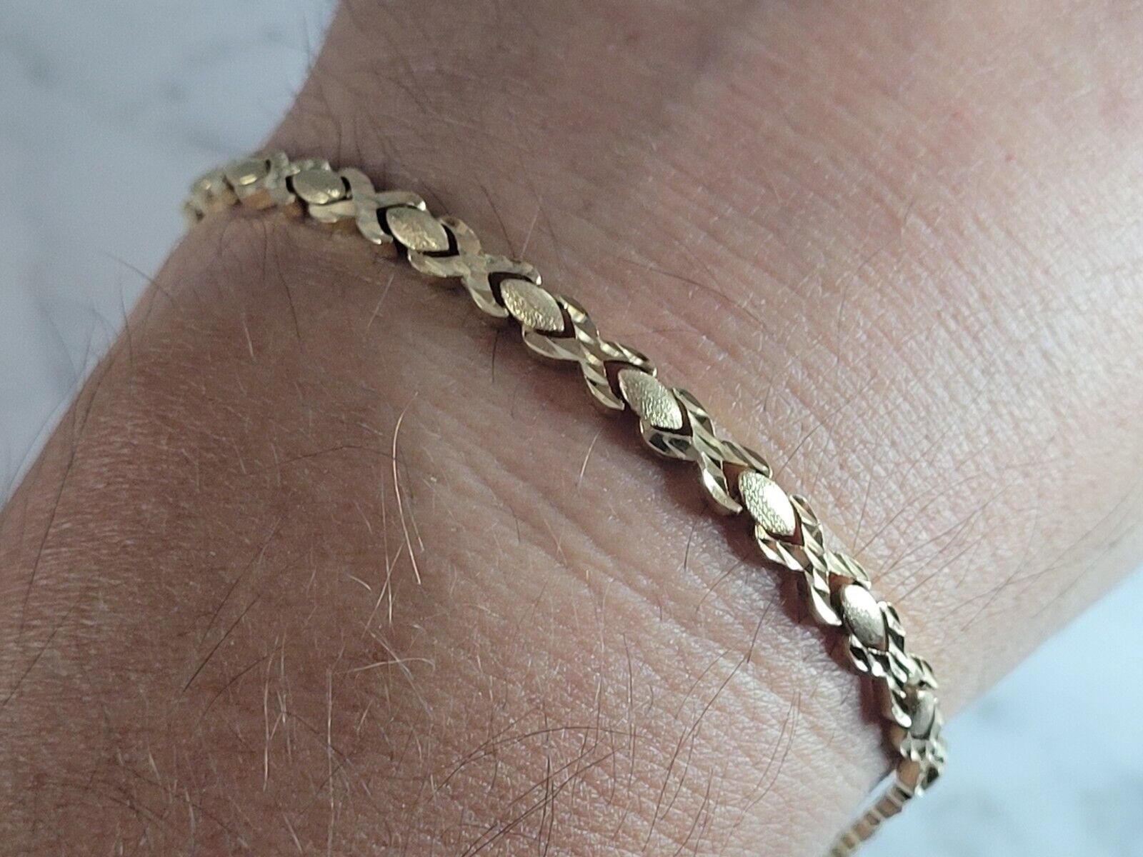 A WOMENS VINTAGE ESTATE 14K YELLOW GOLD CHAIN BRACELET. BRACELET IS 7" LONG BY 3/16" WIDE, AND WEIGHS 7.6g. THIS WOULD MAKE A LOVELY GIFT FOR THAT SOMEONE SPECIAL. ANY QUESTIONS, PLEASE ASK. BE SURE TO CHECK OUT SOME OF MY OTHER GREAT ITEMS UP FOR SALE. THANK YOU.
