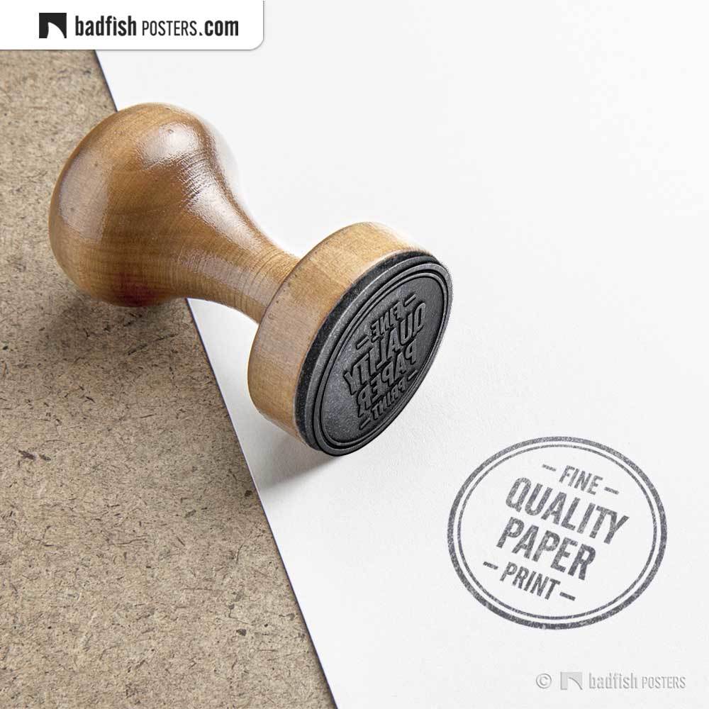 All posters are printed on high grade coated paper with the latest print technology using up to 12 different inks, which provide more texture, more colour brilliance and deep blacks with crisp and dense lines. We use enhanced satin and/or coated semi-glossy high quality paper. We recommend to frame your BadFish poster for better protection.