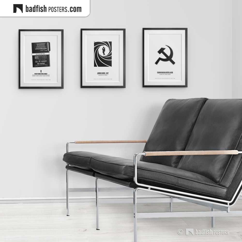 Cinephilia Collection: Set of 3 Movie Posters - FOR YOUR EYES ONLY Poster - JAMES BOND - 007 Poster - FROM RUSSIA WITH LOVE Poster | Minimal Design B W Movie Posters | WORLDWIDE SHIPPING | Copyright BadFishPosters