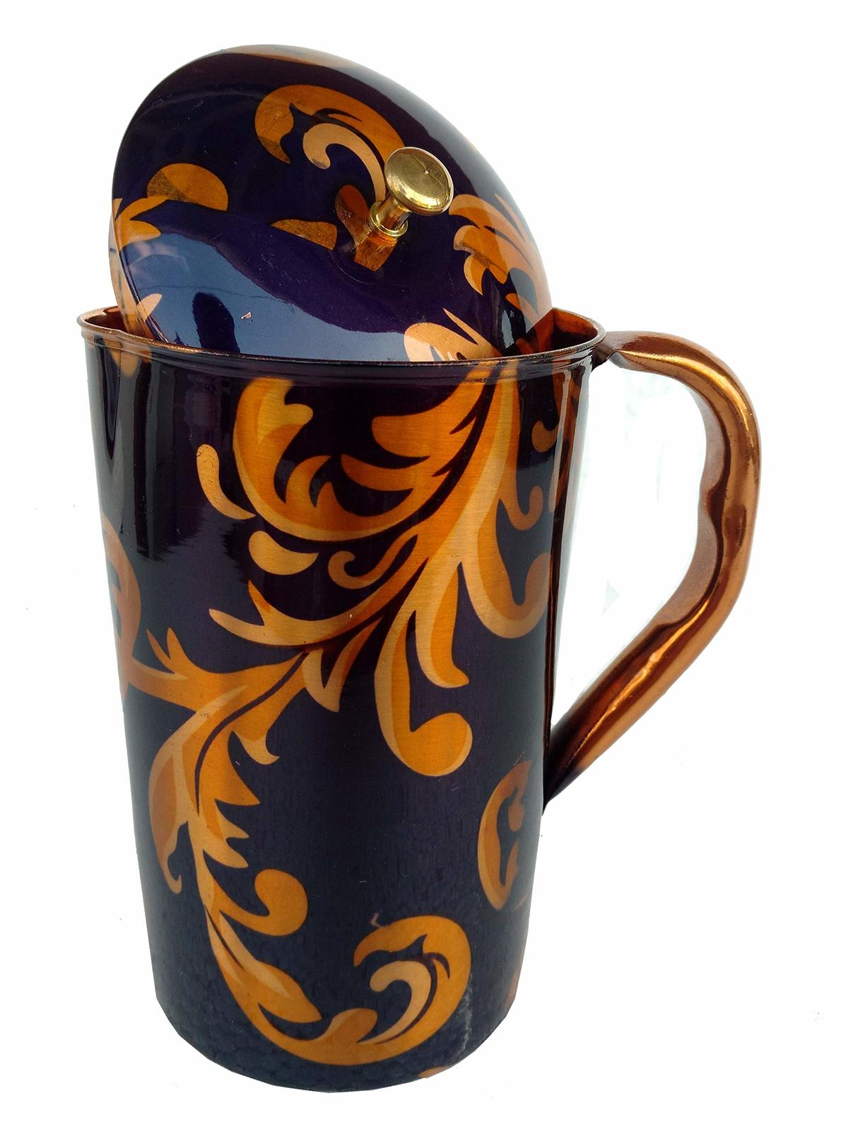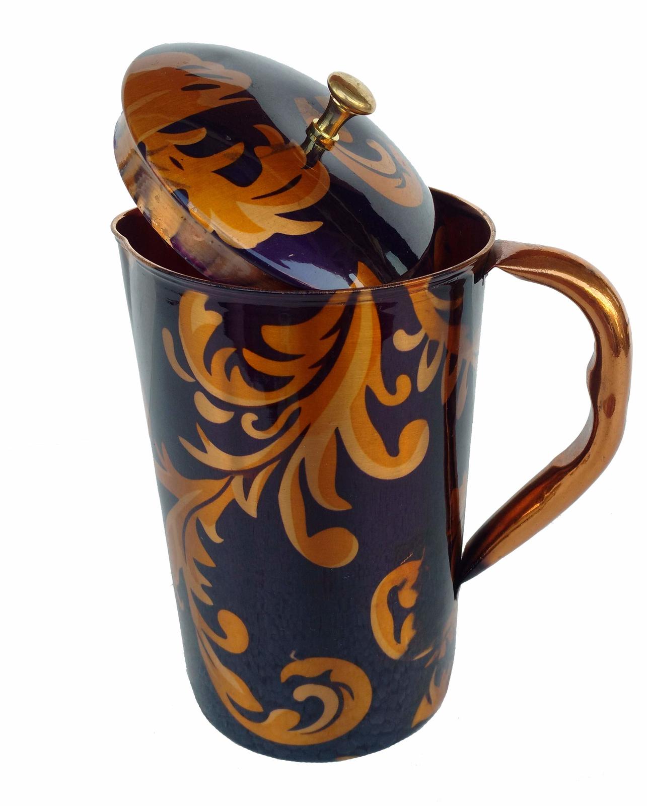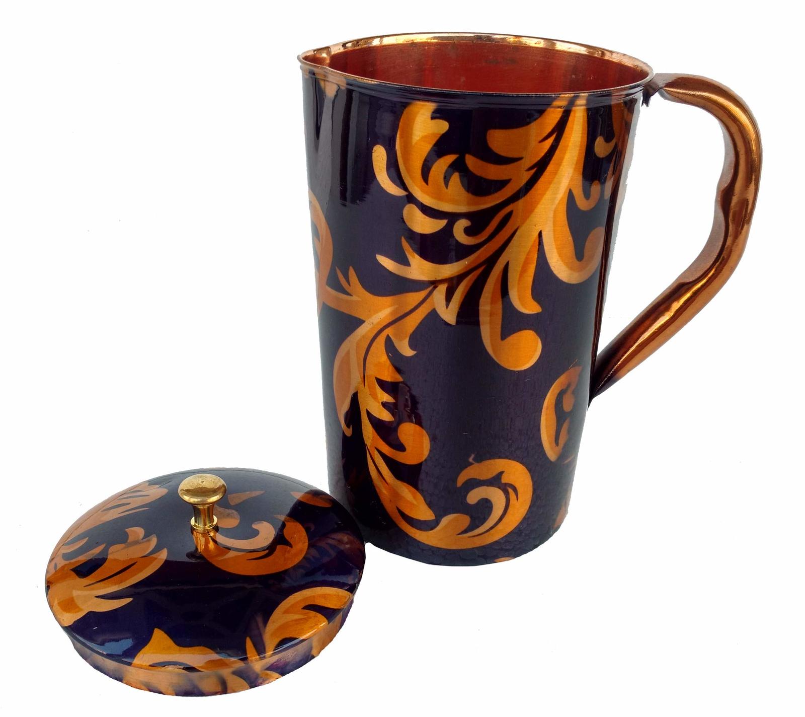 Rastogi Handicrafts screen printed pure copper water jug pitcher 1500 ml (leaf d