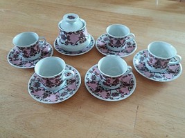 This is a nice Facon Limoges 12-piece hand-painted miniature tea set in excellent condition but is missing 1 cup.