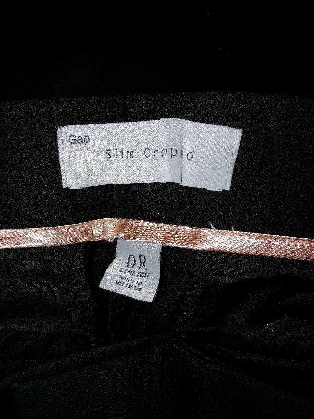 THIS IS A GREAT PAIR OF LADIES GAP SLIM CROPPED BLACK STRETCH PANTS IN A SIZE 0 REGULAR. THEY ARE NEW, WITHOUT THE TAGS.