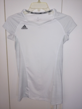 THIS IS A NICE LADIES ADIDAS VOLLEYBALL CLIMALITE SHORT-SLEEVED STRETCH V-NECK PULLOVER ATHLETIC TOP IN A SIZE XS. IT IS IN EXCELLENT, WORN TWICE, CONDITION.