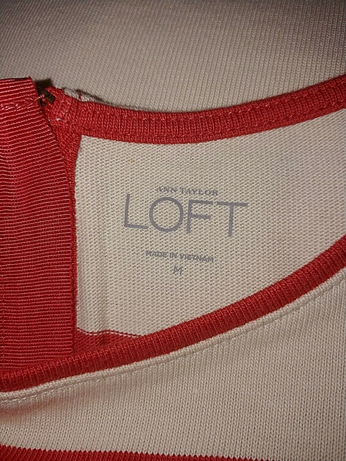THIS IS A NICE LADIES LOFT ANN TAYLOR SHORT-SLEEVED RED/IVORY KNIT PULLOVER TOP IN A SIZE M. IT IS IN EXCELLENT, WORN ONCE, CONDITION.