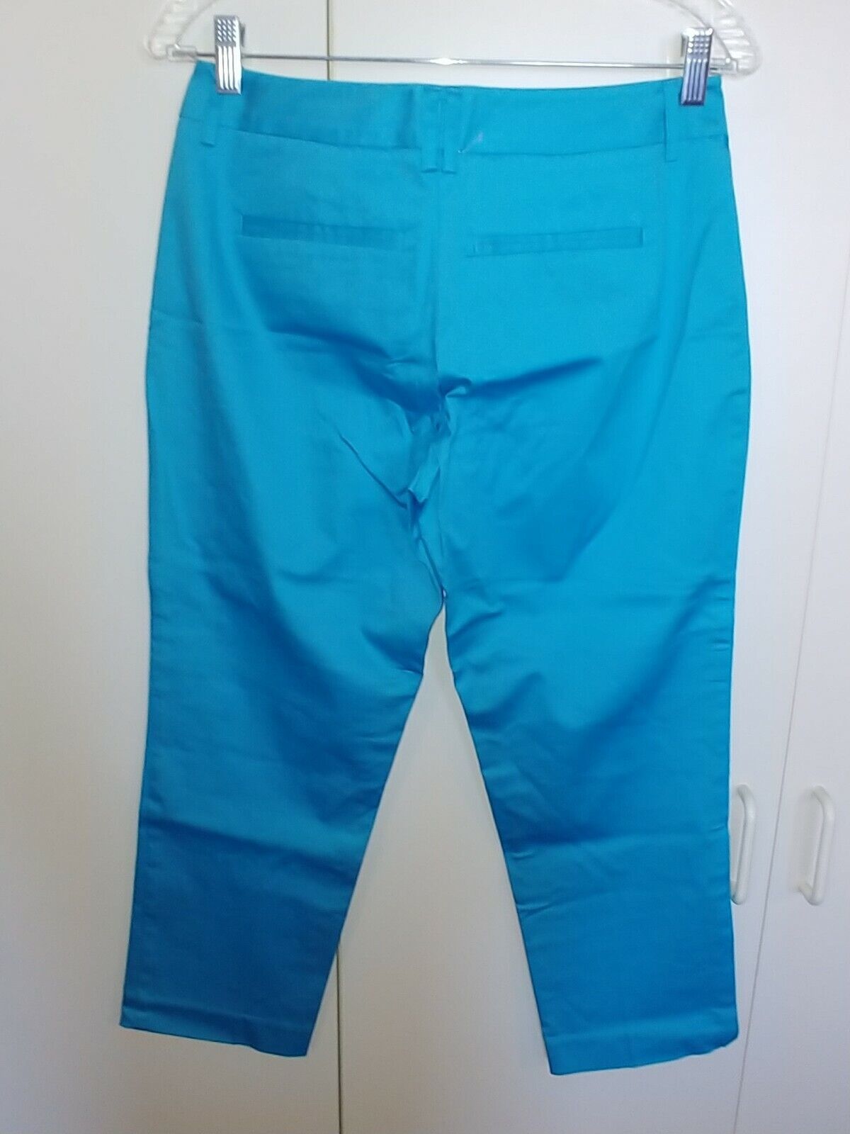 THIS IS A NICE PAIR OF LADIES THE 7TH AVENUE BLUE STRETCH CROPPED PANTS IN A SIZE 4. THEY ARE NEW, WITH TAGS ATTACHED AND A PRICE TAG OF $39.95.