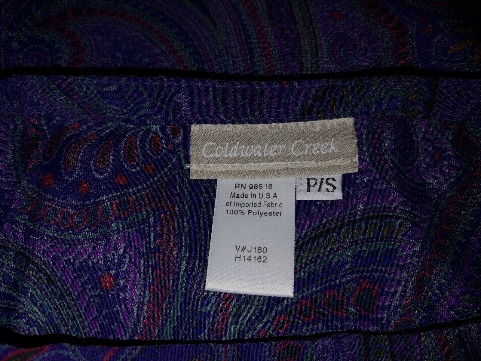 THIS IS A LOVELY LADIES COLDWATER CREEK LONG 100% POLYESTER PAISLEY WRAP SKIRT IN A SIZE PETITE SMALL. IT IS IN EXCELLENT, BARELY WORN, CONDITION.