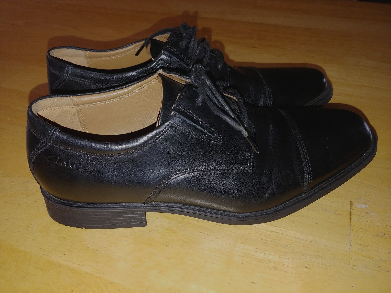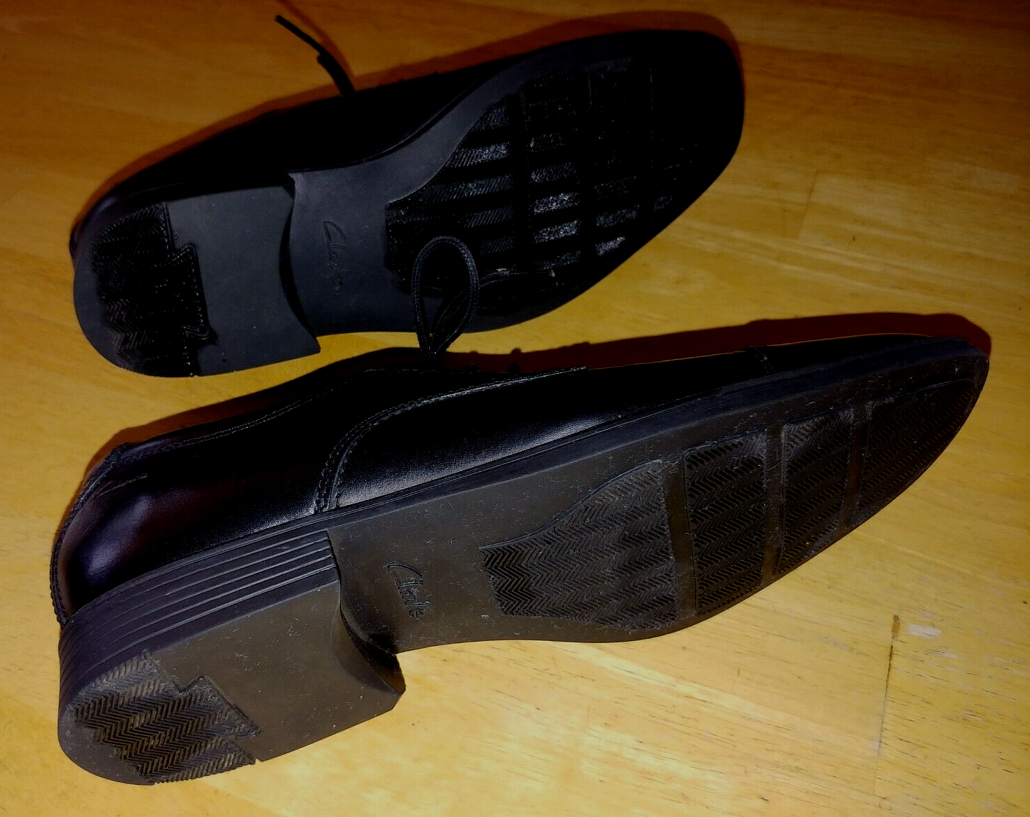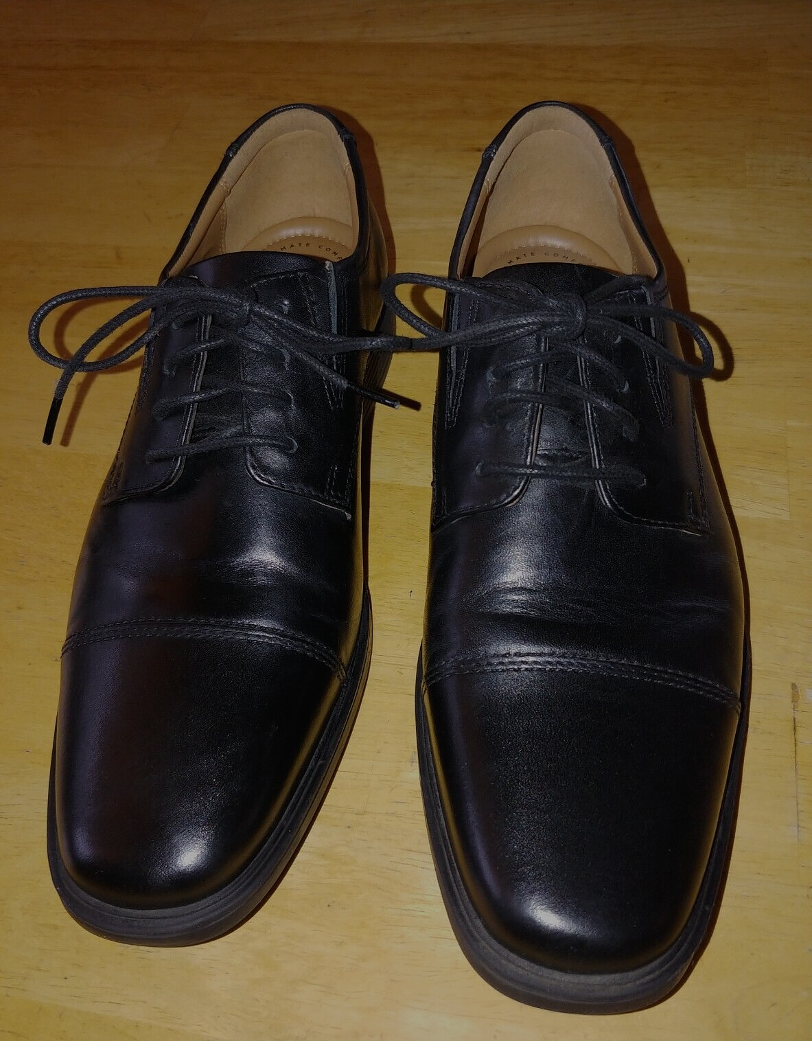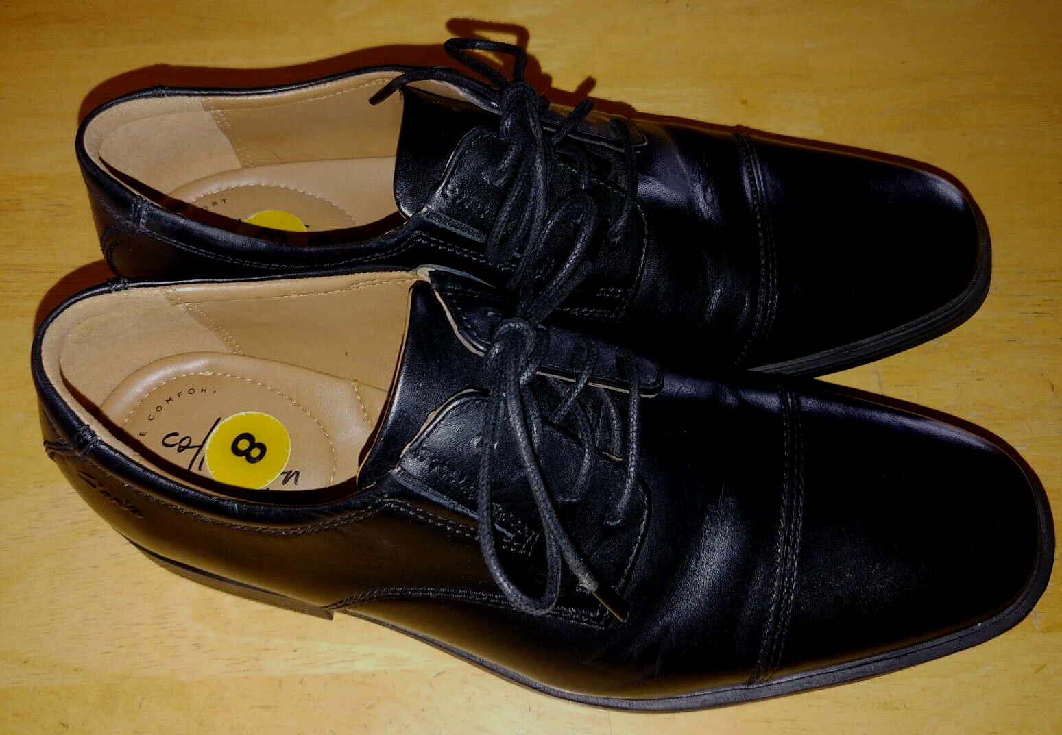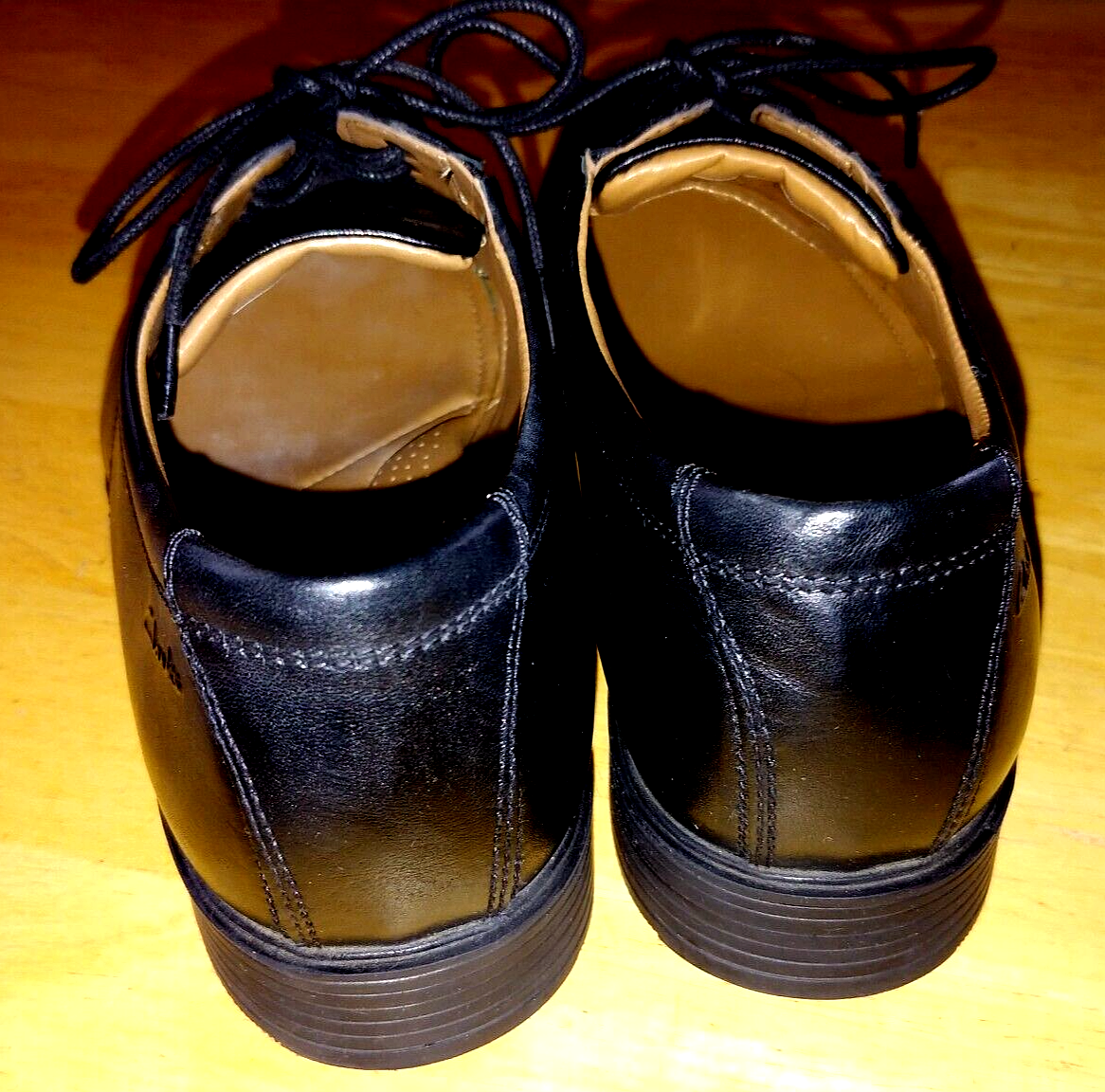 THIS IS A GREAT PAIR OF MEN'S CLARKS ULTIMATE COMFORT COLLECTION BLACK LEATHER LACE-UP OXFORD DRESS SHOES IN A SIZE 8M. THEY ARE IN EXCELLENT, WORN TWICE CONDITION.