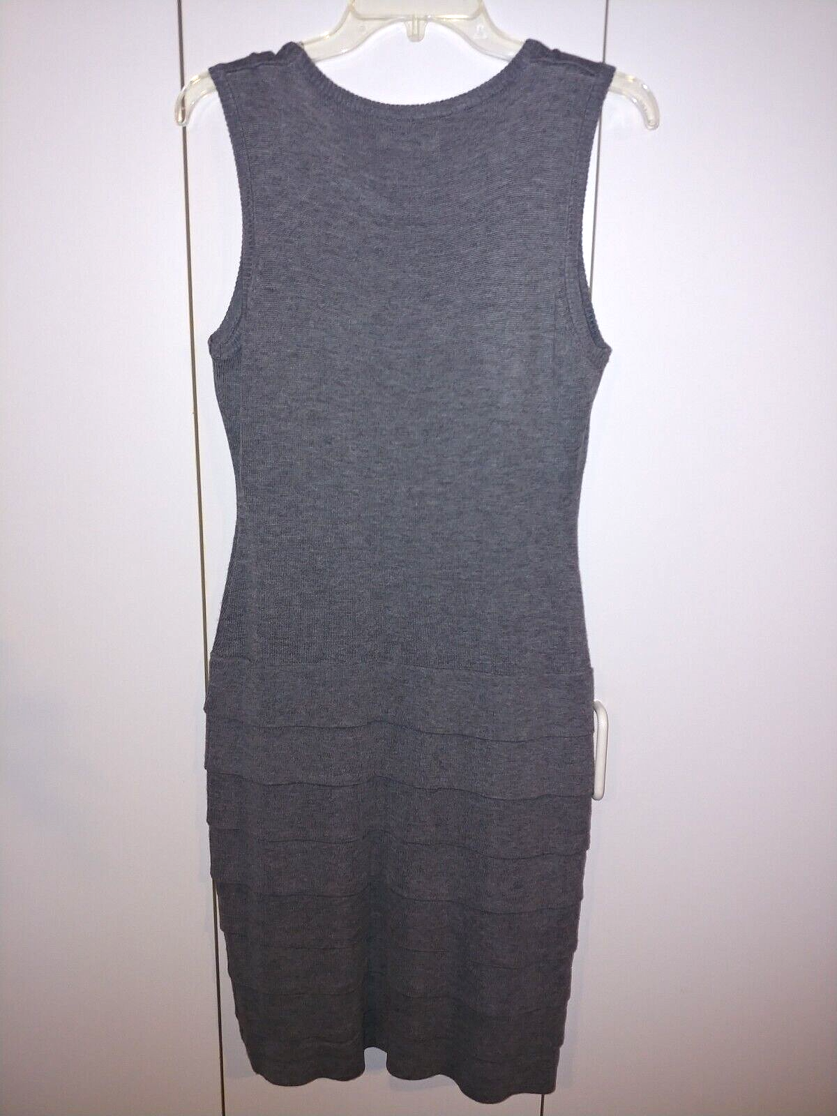CALVIN KLEIN LADIES SLEEVELESS GRAY KNIT DRESS-M-8 TIERS SKIRT-ACRYLIC-WORN 1