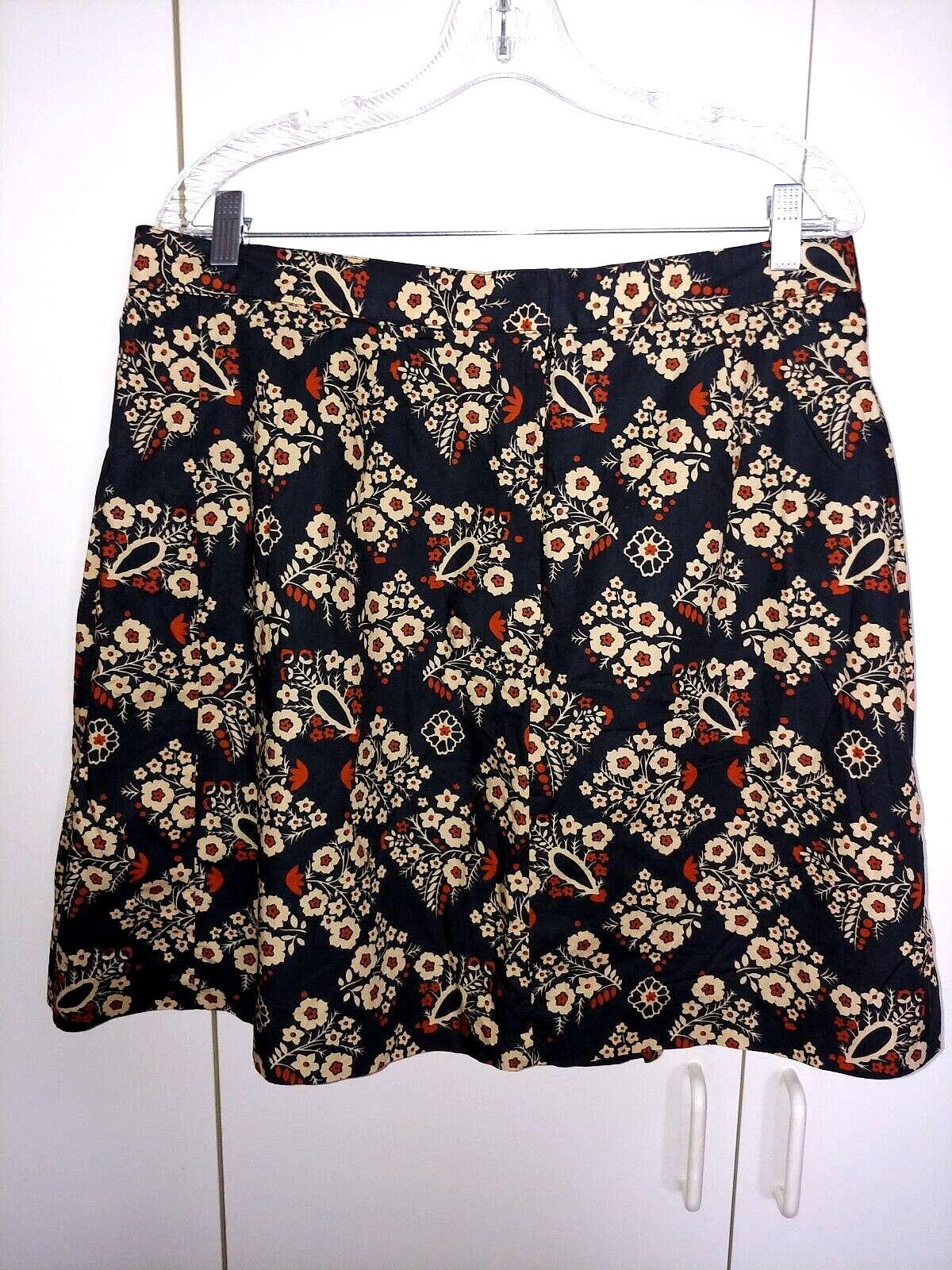 THIS IS A NICE LADIES L. L. BEAN 100% COTTON/LINED PLEATED BLACK/FLORAL SKIRT IN A SIZE 14. IT IS IN EXCELLENT, LIKE-NEW, CONDITION--WORN ONCE.