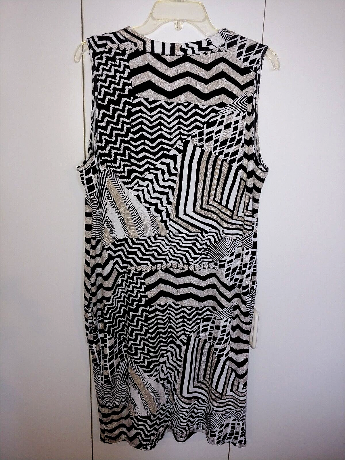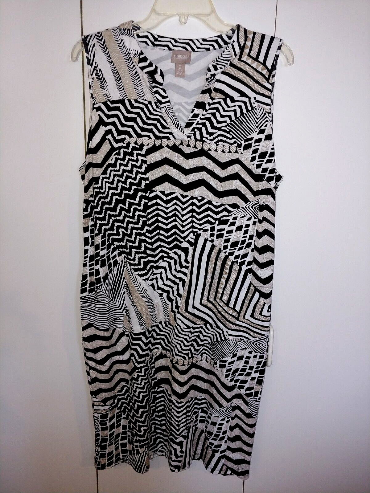 THIS IS A NICE LADIES CHICO'S RAYON/SPANDEX SLEEVELESS PULLOVER KNIT DRESS IN A SIZE 12 (2 CHICO'S). IT IS IN EXCELLENT, VERY GENTLY WORN, CONDITION.