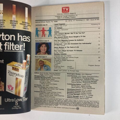 TV Guide Magazine November 21 1981 31495 John Lennon Nashville Ed. No Label