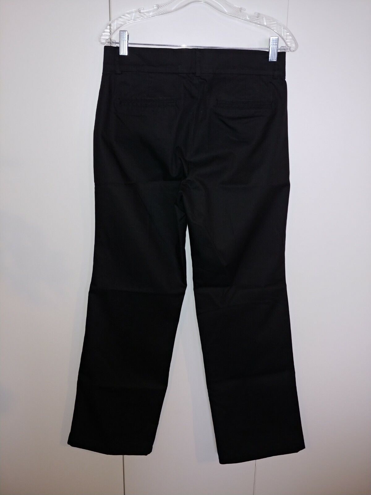 THIS IS A GREAT PAIR OF LADIES DOCKERS KHAKI GOODNESS INSIDE BLACK STRETCH PANTS IN A SIZE 6M. THEY ARE NEW, NEVER WORN, BUT HAVE BEEN HEMMED TO 31 1/4"