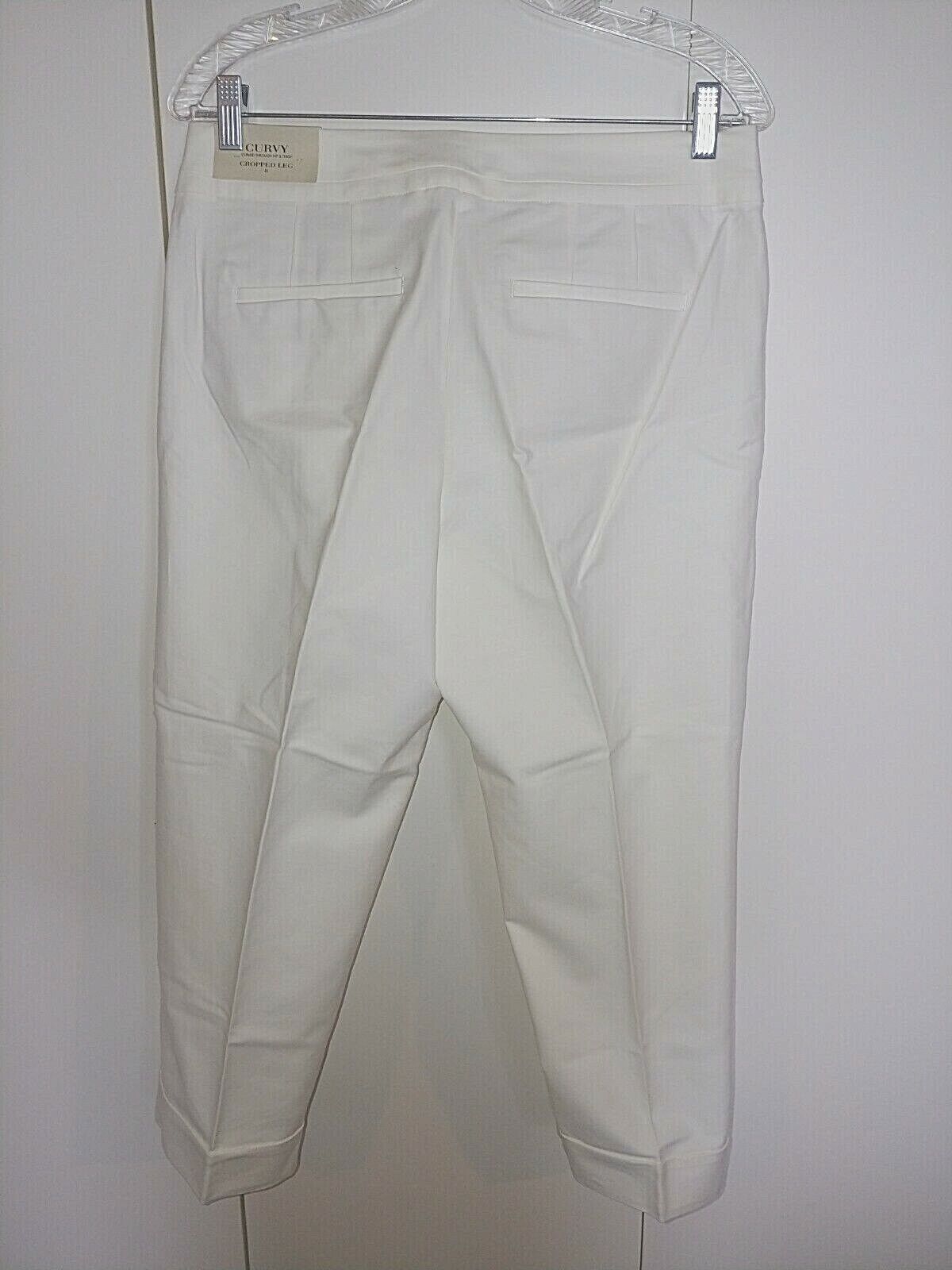 THIS IS A VERY NICE PAIR OF LADIES ANN TAYLOR "CURVY" CROPPED STRETCH WHITE PANTS IN A SIZE 8. THEY ARE NEW, WITH TAGS ATTACHED AND PRICE TAG OF $69.99.