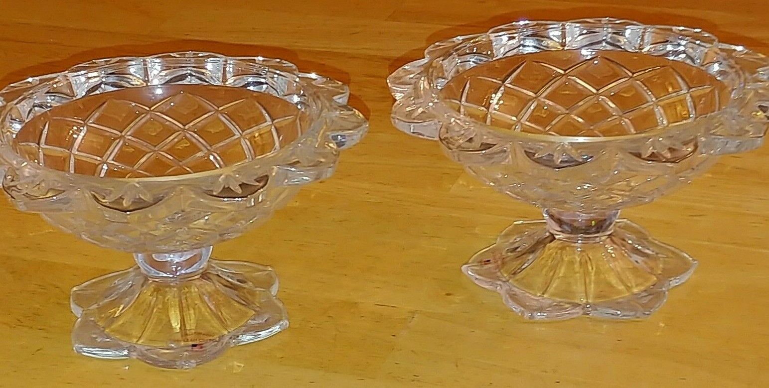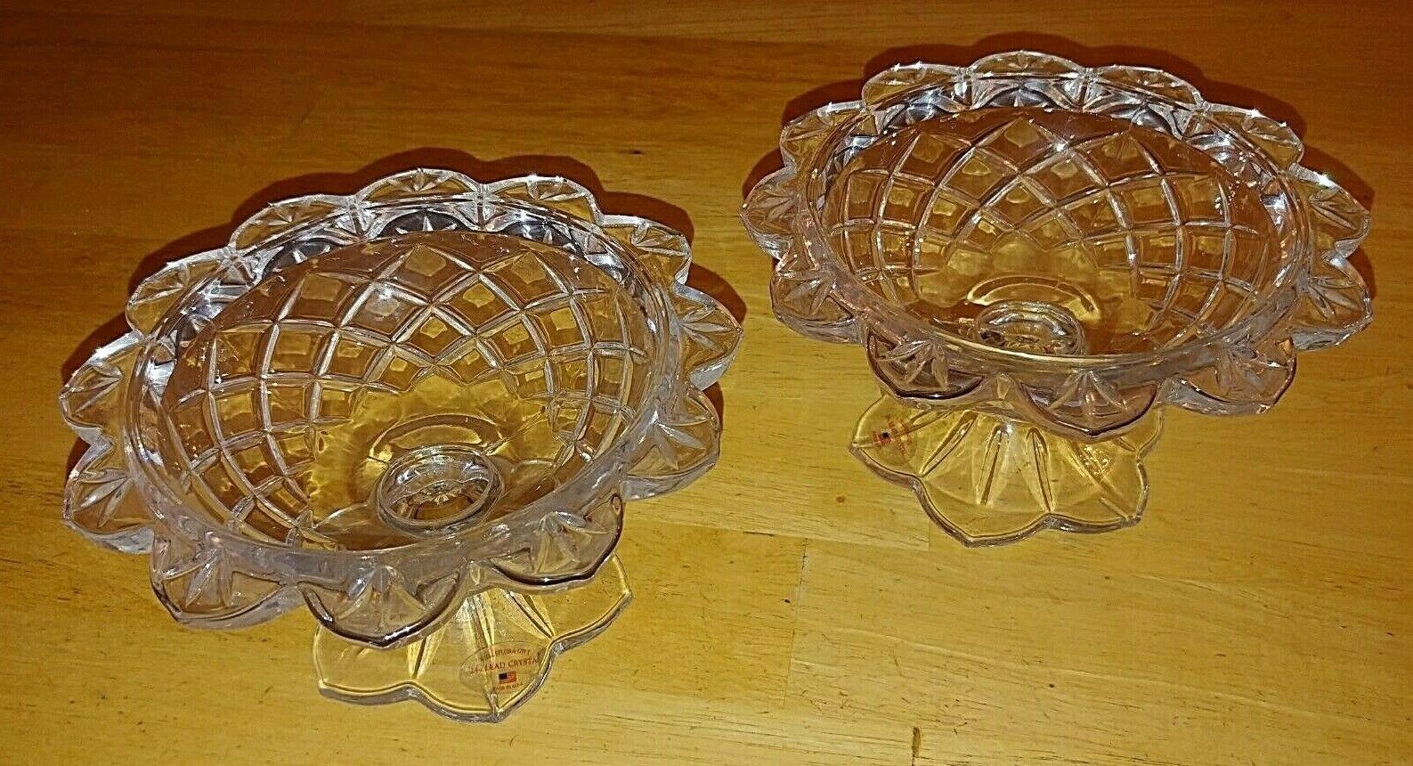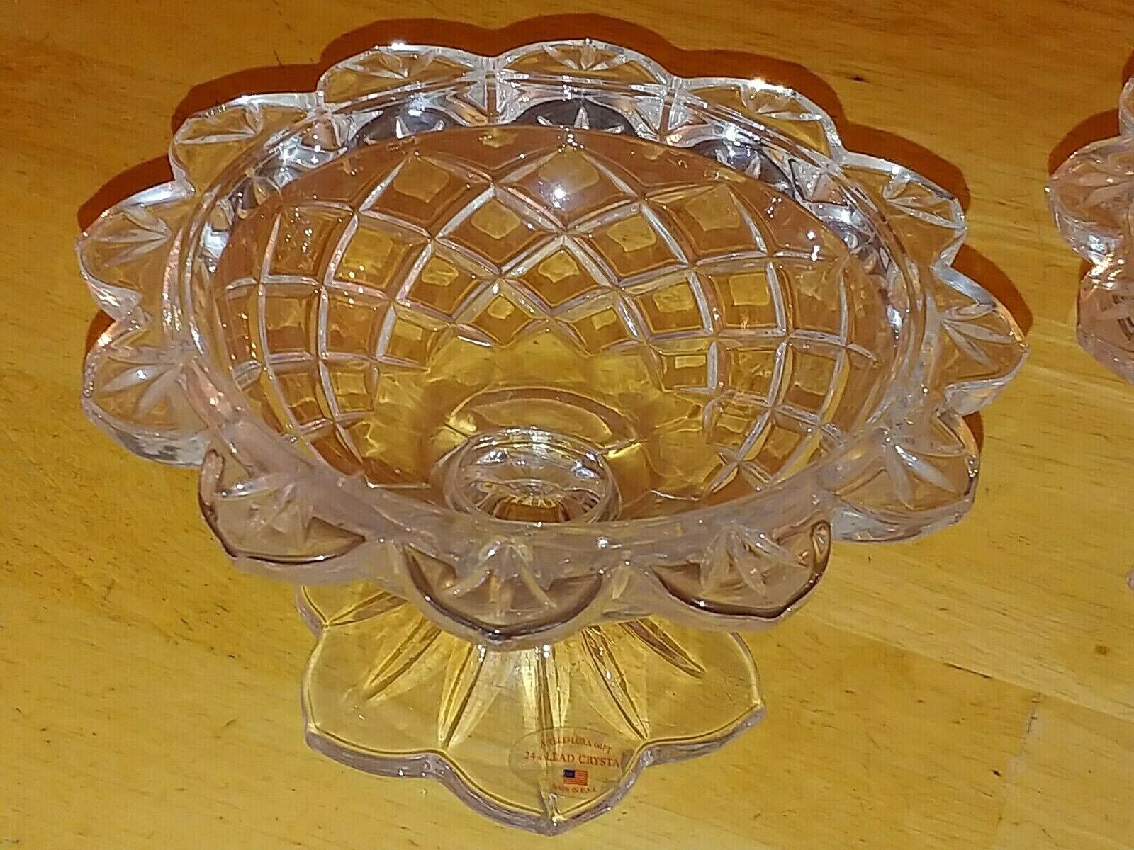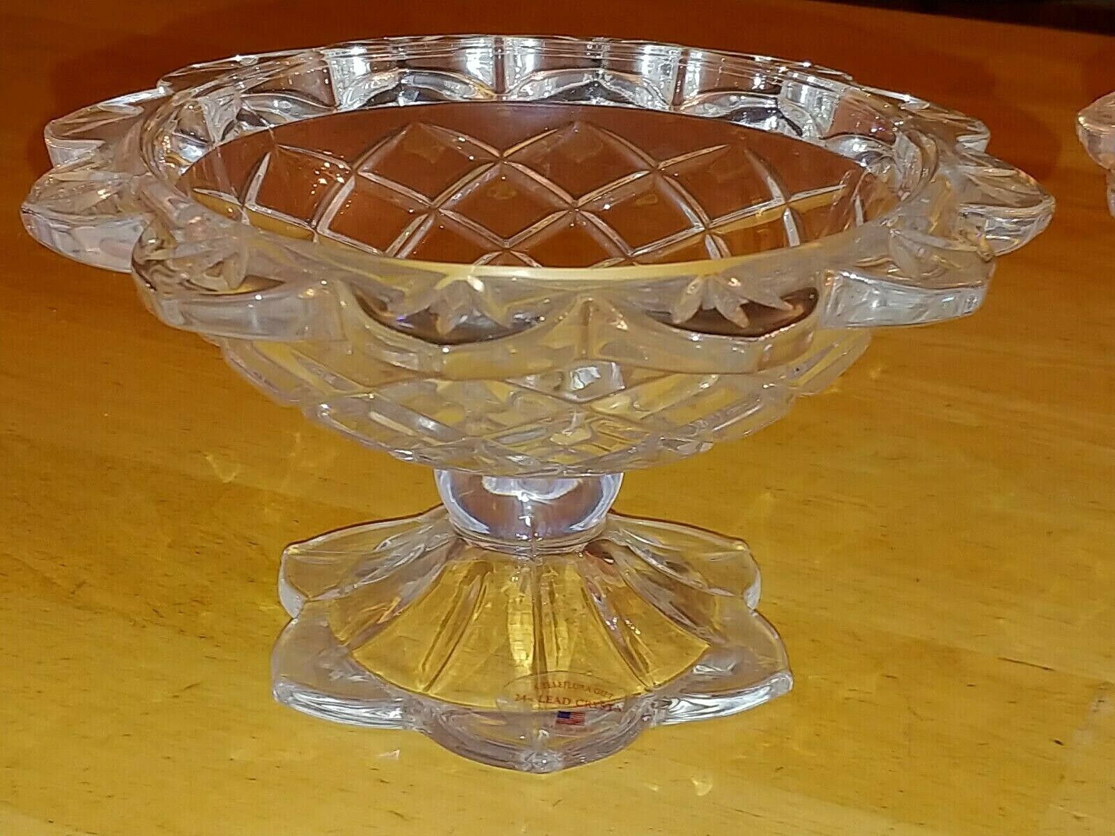 PAIR OF TELEFLORAL 24% LEAD CRYSTAL PEDESTAL CANDY DISHES-NICE/HEAVY-MADE IN USA