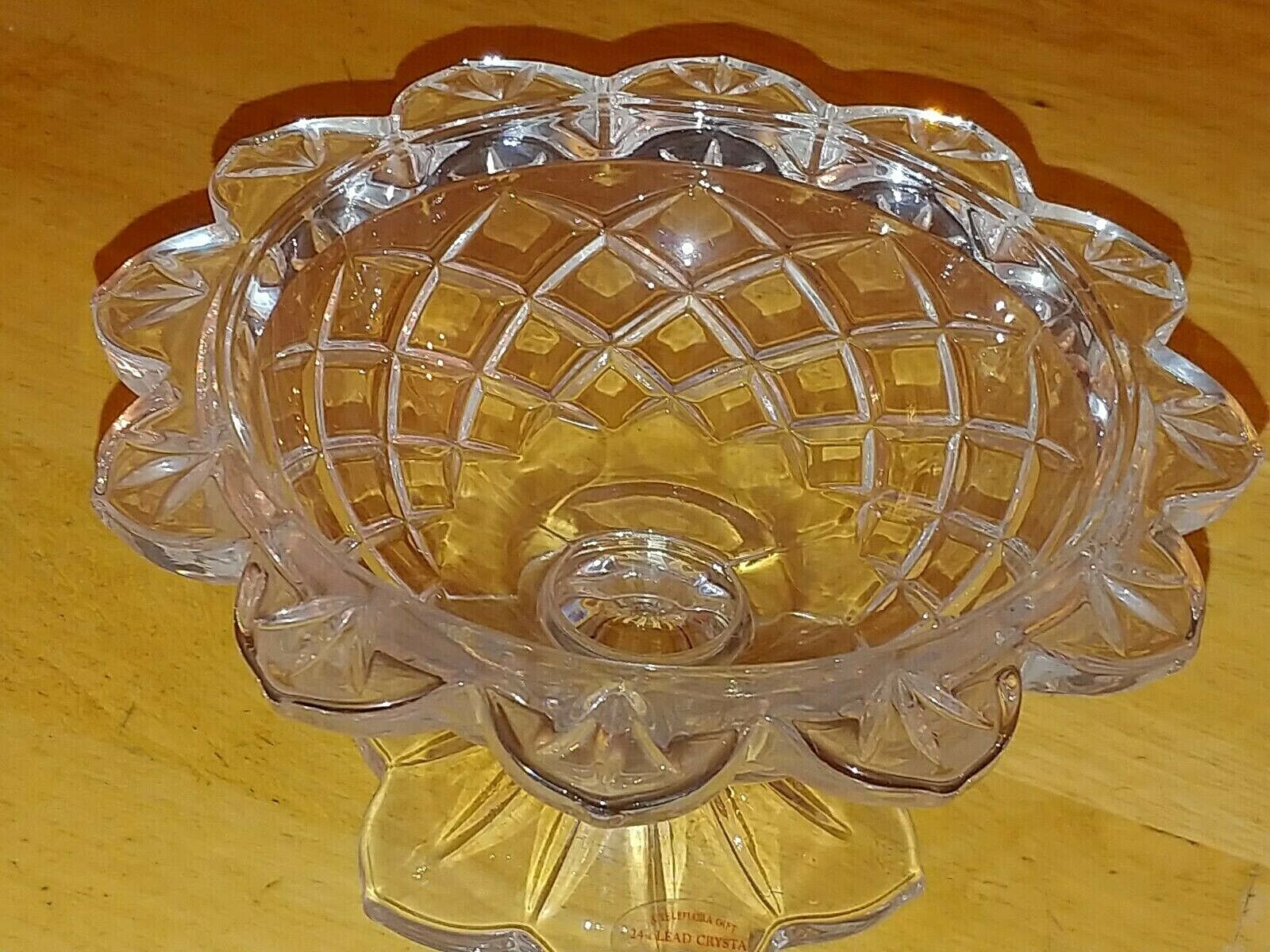 THIS IS A PAIR OF TELEFLORAL 24% LEAD CRYSTAL PEDESTAL CANDY DISHES IN EXCELLENT LIKE-NEW CONDITION.