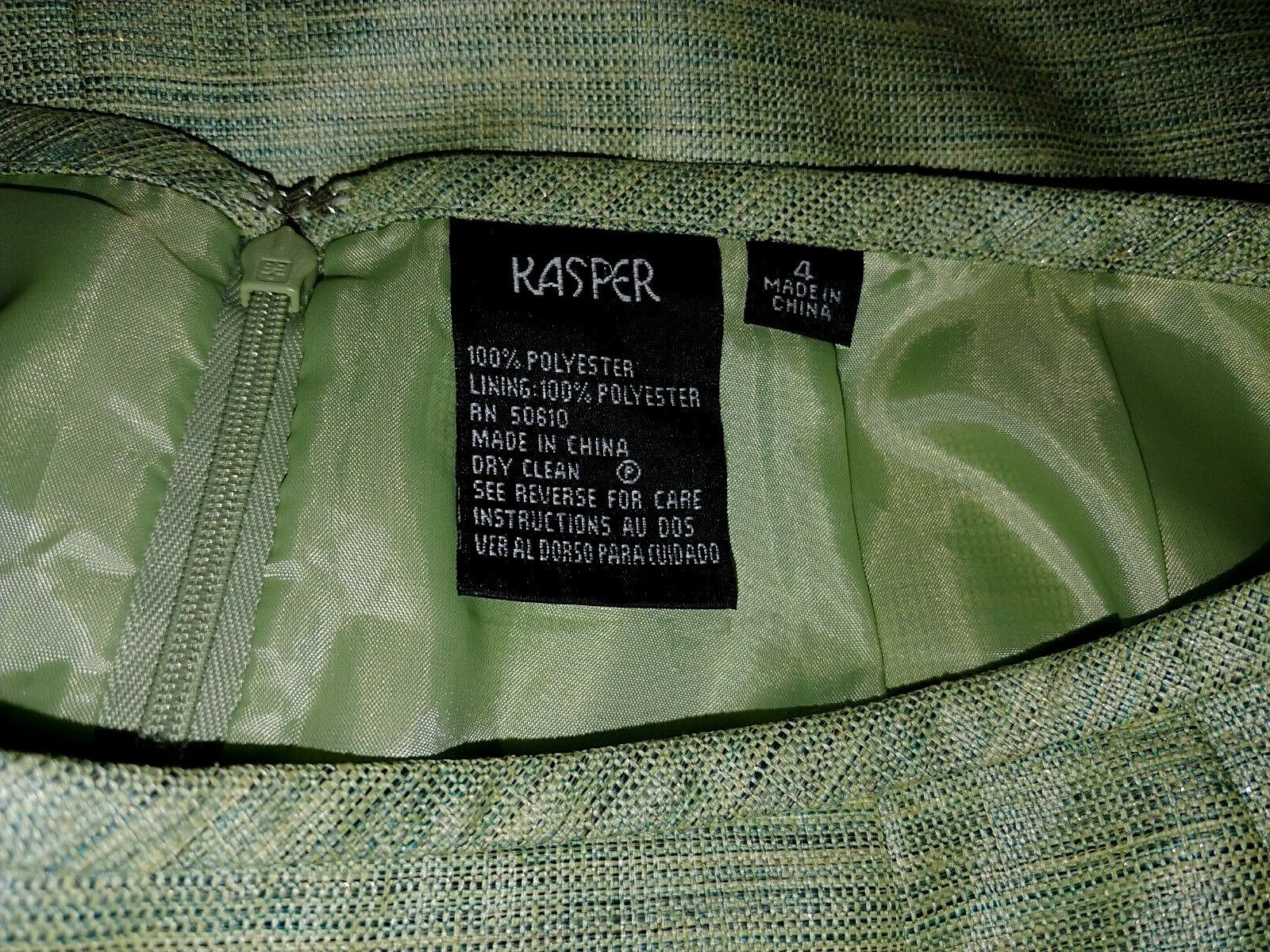 THIS IS A NICE LADIES KASPER GREEN LINED STRAIGHT SKIRT IN A SIZE 4. IT IS NEW, WITHOUT THE TAGS.