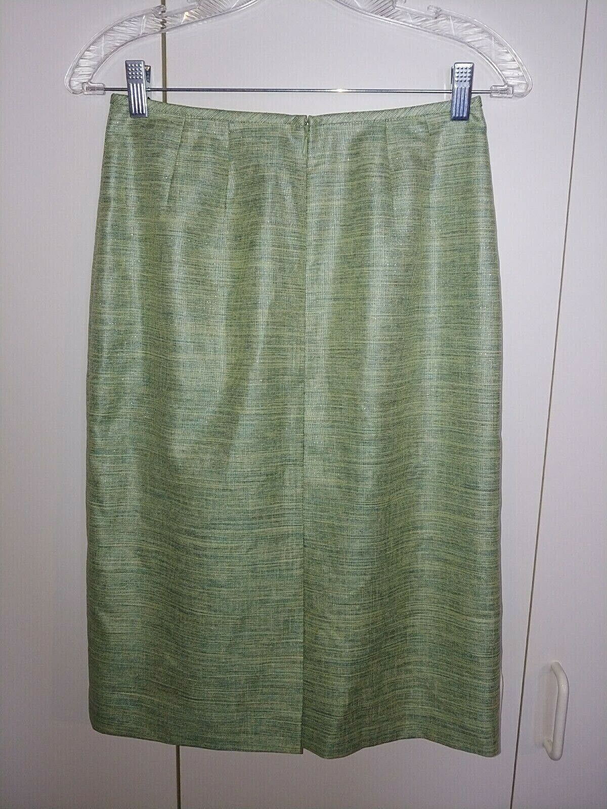 KASPER LADIES GREEN 100% POLYESTER STRAIGHT SKIRT-4-LINED-NWOT-METALLIC LOOK