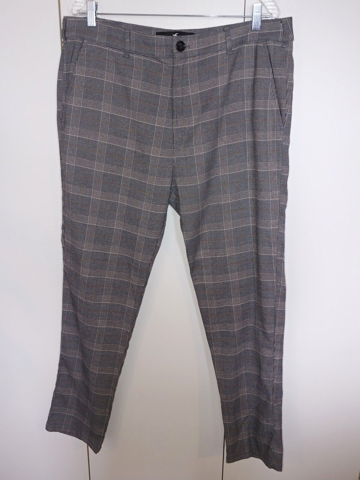 THIS IS A GREAT PAIR OF MEN'S HOLLISTER SKINNY CHINO HOLLISTER EPIC FLEX GRAY PLAID PANTS IN A SIZE 36 x 30.5". THEY ARE IN EXCELLENT, BARELY WORN CONDITION--COUPLE TIMES; INSEAM WAS SHORTENED FROM 32" TO 30.5".