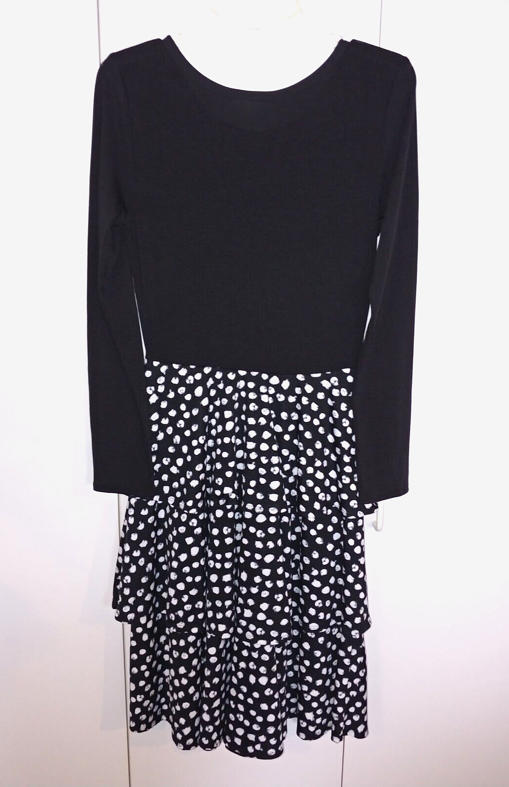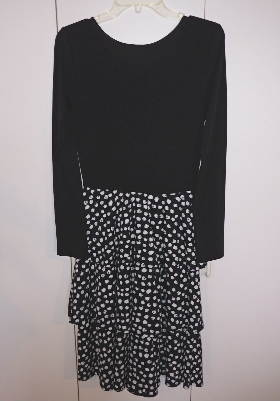 LuLaRoe LADIES BLACK/WHITE LS KNIT PULLOVER TIERED DRESS-M-BARELY WORN-NICE