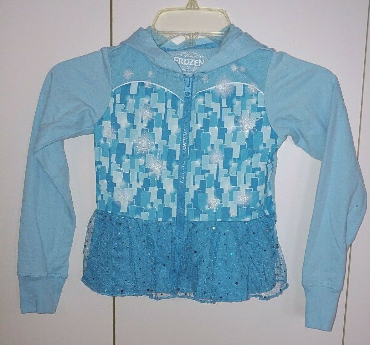 DISNEY FROZEN GIRL'S ADORABLE ZIP HOODIE W/NET & GLITTER-XS(4/5)-GENTLY WORN