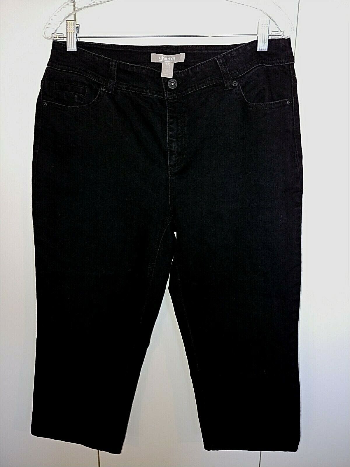 THIS IS A GREAT PAIR OF LADIES CHICO'S BLACK CROPPED JEAN PANTS IN A SIZE 10 (1.5 CHICO'S). THEY ARE IN EXCELLENT, GENTLY WORN, CONDITION.