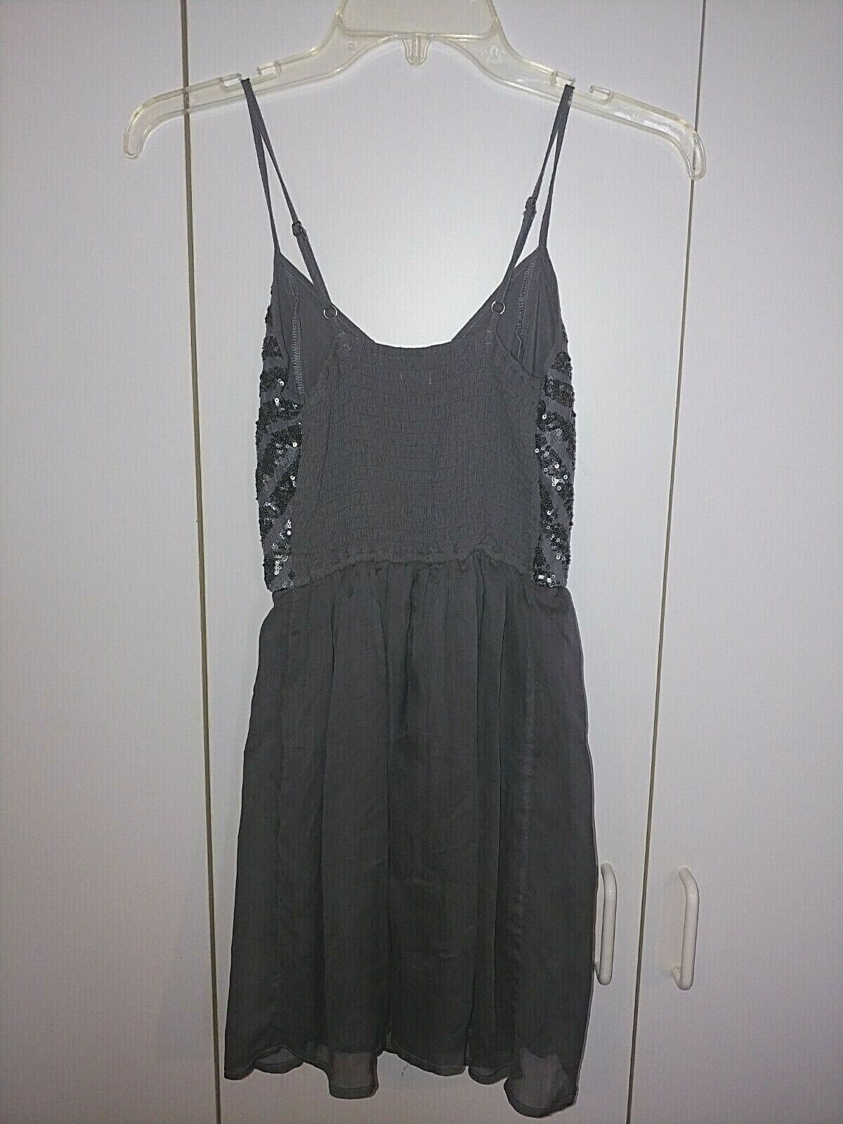 HOLLISTER LADIES GRAY SLEEVELESS MINI-DRESS W/SEQUIN BODICE-BARELY WORN-JR XS added to cart.