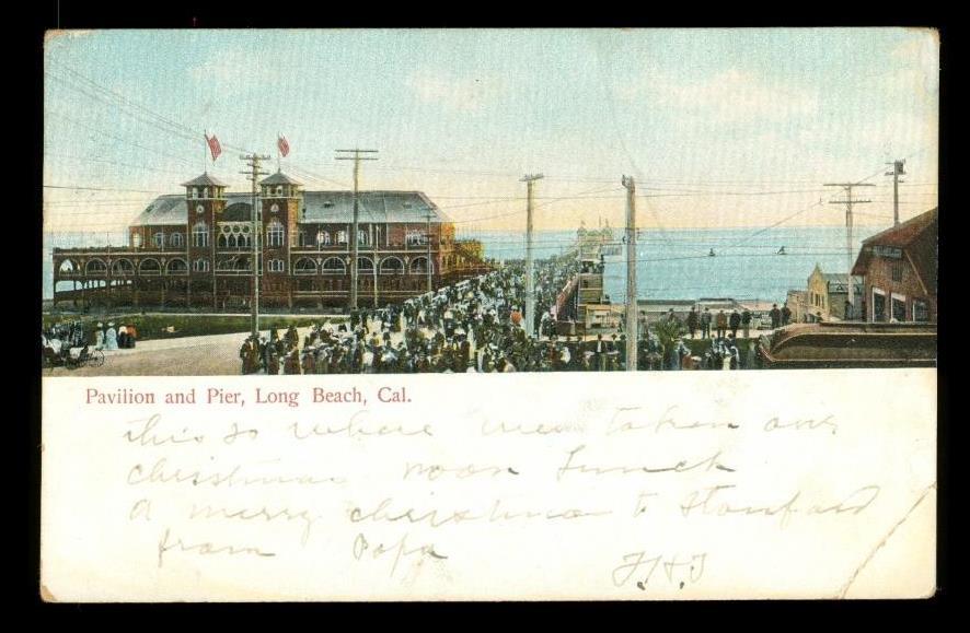 Vintage 1906 Los Angeles Cancel Postcard Pavilion and Pier Long Beach California. Bottom right corner crease.