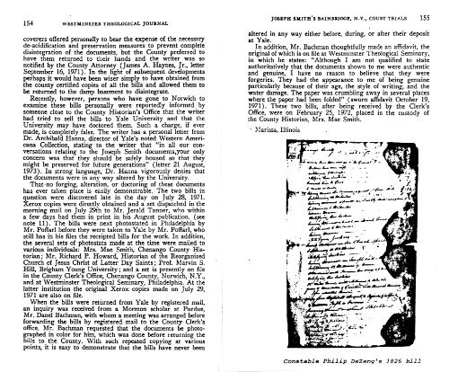 Product description: This booklet is comprised of two articles written by Rev. Wesley P. Walters ("Joseph Smith's Bainbridge, N.Y., Court Trials" and "From Occult to Cult With Joseph Smith, Jr."). It provides crucial historical evidence that Joseph Smith was indeed involved in 'money digging,' in which he commonly used a peep-stone to search for buried treasure. Young Joseph was so well known for this "skill" that his reputation gained him work far from his New York home, which also led to complaints from locals about his magical activities being a pretext for fraud. This research provides evidence in the form of court records that show that Joseph Smith was taken to court because of this, although he was later given "leg bail" (allowed to leave town by the personal mercy of the judges involved). The importance of this evidence is that it proves that Joseph Smith was indeed involved in magic-seeking activities like peep-stone viewing, which he also employed in the translation of the Book of Mormon, a charge that has often been denied by Mormon leadership in the past.